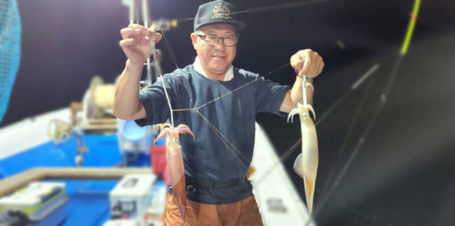 (ケンサキイカ)1~4匹 アジ 夜アジ・アカイカ船