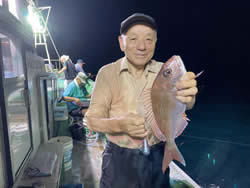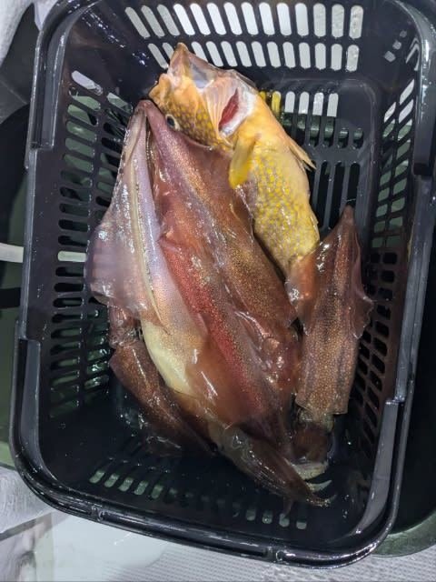 (ケンサキイカ)10~38cm 1~15匹 キジハタ 3便。 アカイカ/胴長10〜38cm/1〜15匹、 他キジハタ等が釣れました