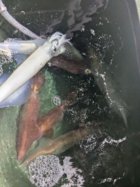 (ケンサキイカ)20~40cm 0~4匹 アジ 25~38cm 竿頭15匹 ※中サバの猛攻で大苦戦でした!アジ・アカイカは良いサイズ揃いました!