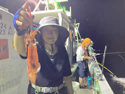 (ケンサキイカ)10~38cm 6~14匹 3便。 アカイカ/胴長10〜38cm/6〜14匹。