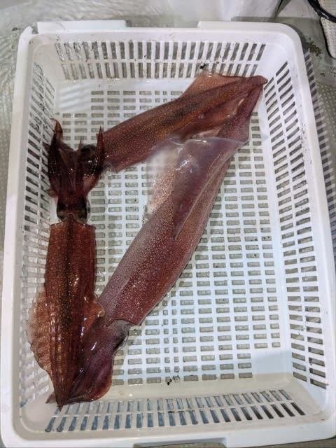 (ケンサキイカ)10~30cm 0~5匹 サバ アジ 4便。 アカイカ/胴長10〜30cm/0〜5匹、 他サバ、アジ等でした。