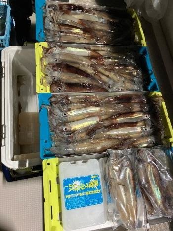 ケンサキイカ 本日半夜便で出船しました! 今日は波もなく穏やかで釣りがしやすくどこの場所に行こうか悩みながらイカのポイントに向かいました。 いざポイントについてやってみるとなかなか当たりがなく中盤ぐらいまで粘ってみるとポツン釣れ始め棚が1番下や中層や上層で釣れたり棚からバラバラで大変でした。 釣果ですが ケンサキイカ釣れた方で5杯その次に3、2.1.0でした。 大きさが手のひらから25㎝ぐらいでした。 次にスルメイカ 釣れた方で10杯でその次に8.7.5.1でした。 大きさがみんな20㎝ぐらいでした。 今回釣れた色はオレンジ、赤黄色後音が鳴るやつでした。 本日の乗船ありがとうございました。 またの乗船お待ちしております。