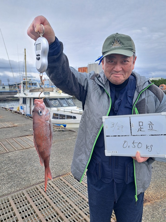 0.50~1.90kg 0~3匹 「午前マダイ船」マダイダービー始まりました! 前半ぼちぼちありましたが潮止まってからは食い悪かったです。 水温も少しづつ上がってきてるので期待したいです。