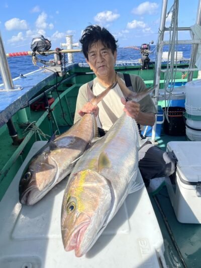 21号船23号船2隻分釣果。 今日はチビムロ渋く中ムロデカムロで勝負しました!いい流しでトリプルヒットありました!ヒラマサ1本水面まできましたがおまつりバレ。 ルアー絶好調!リリースサイズ多めですが数釣れて楽しめました。 潮タルタルなので流れればエサとルアー共にもっと面白いと思います。 五目はヒメダイポツポツ他アカイサキウメイロなどお土産になりました!