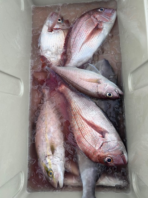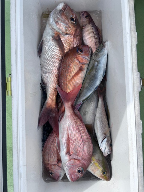 30~50cm 8~13匹 ウメイロ 28~30cm 2~4匹 ウマヅラ ムロアジ サバ 金洲五目で出船ボツボツ釣れてます。