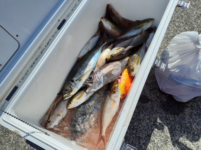30~50cm 8~15匹 イサキ 35~43cm 2~8匹 ウメイロ アオダイ アカイサキ ウマヅラ ムロアジ サバ オナガダイ 金洲五目で出船ボツボツ釣れてます。