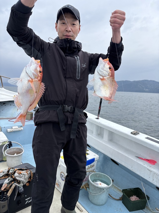 (アカアマダイ)23~32cm 1~7匹 本日はアマダイ最終戦でした!潮流れず、濁りも入り、さらに雨と悪条件揃い。アタリ少なくかなり難しかったですが、トップ7匹をはじめ皆さん顔見ることができました!ありがとうございました!!そして雨の中お疲れさまでした。 アマダイ 23~32cm 1~7匹 キアマダイ、レンコ、トラギス、ヒメ 10/16から始まり長きに渡ったアマダイ船(シロアマダイ船)も本日で終了となりました。近年増えてきてはいましたが、昨年末にかけては白甘鯛好調でしたね!そのおかげもあり、たくさんのお客様にお越しいただき誠にありがとうございました。シロアマダイ専門船としては一年生で、まだまだ至らないところが多かったので、この経験を来シーズンに繋げてさらにパワーアップできればと思います!今年は10/1より開幕しますので、また皆様よろしくお願いいたします。 そして4/3より三保沖乗っ込み真鯛狙い(マダイ船)がスタートします!釣果には載せていませんが、何度か様子見には行っております。反応はそこそこありますが、釣れてくる魚は乗っ込みという個体はまだ少ないようです。例年通りだと4月中旬以降からGWにかけて最盛期を迎えそうなパターンです。しかし、真鯛釣り師の皆様ならXデーを求めてどんどんチャレンジしてもらえますよね?!コマシ込みを含めてお待ちしております。御予約の方はチラホラとはいただいております。GW中の御予約もすでに受け付けていますので、混み合う前に早めの御予約をオススメいたします!