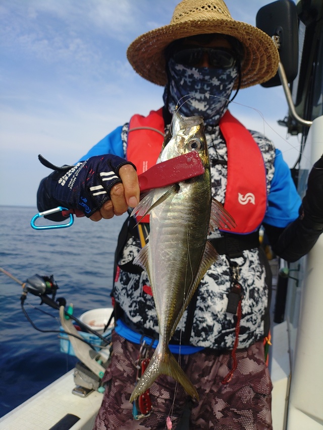 (アカアマダイ)シイラ クロムツ オキアジ 豪雨からの凪間 雨水泥水を避けながらも 浅場で、甘鯛。 少しずつ深場へ移行して 拾ってもらいました。 表層にはまだまだ短冊シーラ、 ですが夏の魚も釣れてます。 毎日変わる海 また臨機応変に出船して 行きたいところです。