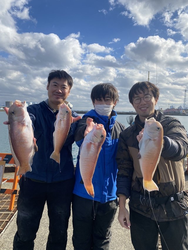 22~43cm 2~14匹 底潮流れず難しかったです!パタパタっと喰ってきたり、また止まったりと。1キロ頭に、良型もチラホラあがりました!ツ抜けできた方もいまして、5~6匹の方が多かったです。お子さんもバッチリゲットできていましたね! アタリ棚を見つけることが重要です!その日、その時間、潮や仕掛けによってもそれぞれ違うので、自分なりの正解を導き出してくださいね。 シロアマダイ 22~43cm 2~14匹 その他、イトヨリ、カイワリ、アジ、ソコイトヨリ、レンコなど 明日(1日)は満席となりました!ありがとうございます。 明後日(2日)は空き3名。チャレンジャー募集中!! 次の土日(6,7日)はまだお席に余裕あります!御予約お待ちしております。 年末年始の御予約も承っております。釣行予定の方は早めの御予約をオススメします!