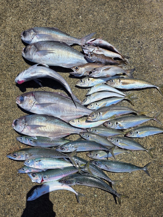 アジ 15~20匹 イトヨリ メダイ アジ、小〜大型。 濁りがありましたが、アジは、いい食いでした。アマダイは、撃沈でした。 ソーダが、いなかったので、良かったです。 みなさんお疲れ様でした。 また宜しくお願いします。
