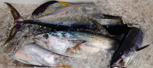 6.50~7.00kg 0~1匹 ビンチョウマグロ 8.00~12.00kg 0~1匹 キメジ 3.00~17.00kg 2~8匹 カツオ 2.00~2.50kg 0~3匹 本日1/12(日)は、『トンジギ(ビンチョウ)・キハダジギング&キャスティング』乗合へ出船致しました。 良い凪に恵まれました。 投入開始~沖上がりのお時間まで喰いっぱなしの1日でした。 ビンチョウマグロ(トンボ)、キメジ、ハガツオ、カツオetc.で楽しめました。 中盤以降はリリースが多かったです。 クーラーBOX画像はお車に積込む前に間に合って撮れた物のみのUPです。 本日も皆さんお疲れ様でした。 明日1/13(月)は、『泳がせマグロ』へ出船致します。 何卒宜しくお願い致します。 明後日1/14(火)は、『トンジギ(ビンチョウ)・キハダジギング&キャスティング』乗合へ出船致します。 あと4名様募集中です。 お問い合わせ下さい。 何卒宜しくお願い致します。 ーーーーーーーーーーーーーーーーー トンジギ(ビンチョウ)・キハダジギング狙いの御方は、最低タックルがPE4号リーダー100~80lbです。 キハダかメバチの80~100kg級も回遊中です。 ジギングチャレンジャーは、PE6号リーダー130lb位です。 (採捕枠がある時)のマグロ狙いはPE10~12号で宜しくお願い致します。 1/9(木)~3/31(月)まで『採捕禁止』になりました。 釣れてしまった場合は、リリースとなりますのでご了承下さいませ。 何卒宜しくお願い致します。 ーーーーーーーーーーーーーーーーー 南伊豆沖の遠征&近海(でも遠い) トンジギ(ビンチョウ)&キハダ絶好調です!! 時化と時化の凪間のチャンスを狙って下さいね~♪ ーーーーーーーーーーーーーーーーー 1/13(月)泳がせマグロ 1/14(火)トンジギ(ビンチョウ)・キハダジギング&キャスティング乗合 あと4名様募集中です。 お問い合わせ下さい。 何卒宜しくお願い致します。 1/15(水)募集中! 1/16(木)泳がせマグロ 1/17(金)中深海アカムツ・アラ・イシナギ乗合 あと2名様募集中です。 お問い合わせ下さい。 何卒宜しくお願い致します。 1/18(土)トンジギ(ビンチョウ)・キハダジギング&キャスティング乗合 あと4名様募集中です。 お問い合わせ下さい。 何卒宜しくお願い致します。 1/19(日)トンジギ(ビンチョウ)・キハダジギング&キャスティング乗合 あと4名様募集中です。 お問い合わせ下さい。 何卒宜しくお願い致します。 。。へ出船予定でおります。 その他記載されていない全ての日も随時募集中です!! のでお問い合わせ下さい。 乗合、チャーターどちらも募集中です。 何卒宜しくお願い致します 皆様に支えられて、感謝感謝の毎日です♪ 南伊豆手石港第8寿広丸(ジュコウマル) 《ご予約・お問い合わせ》 TEL090-3387-7630タカ船ちょ!(三俣=ミマタ) HPhttps://no8jukomaru.com/ LINE公式アカウントhttps://lin.ee/2tnezGq #寿広丸 #御蔵島 #ヨコヅナイワシ #キハダ #キハダマグロ #マグロ #ジギング #キャスティング #トンジギ #ビンチョウマグロ #遠征 #南伊豆 #手石港 #ヒラマサ #カンパチ #マハタ #オナガダイ #スロージギング #深海 #中深海 #アカムツ #クロムツ #キンメ #ベニアコウ #アブラボウズ #イシナギ #メバチ #キャスティング
