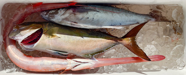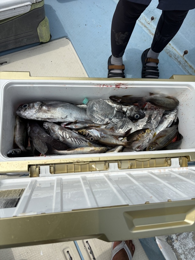 アジ 15~20匹 クロムツ イトヨリ アジ、小〜大型。 濁りがありましたが、アジは、いい食いでした。アマダイは、撃沈でした。 ソーダが、いなかったので、良かったです。 みなさんお疲れ様でした。 また宜しくお願いします。