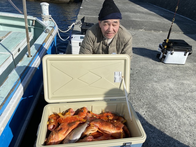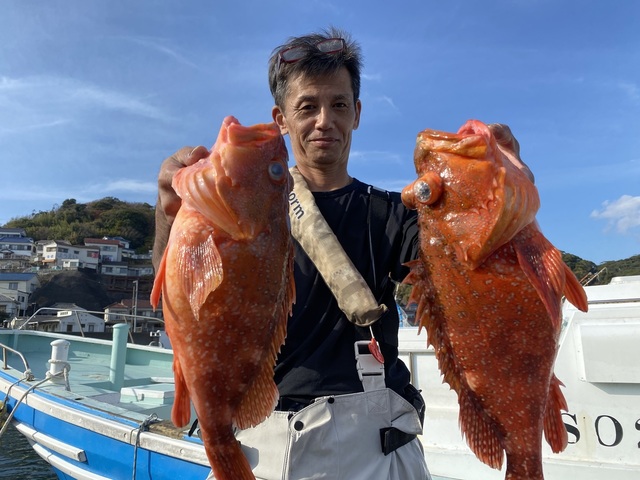 (カサゴ)シロアマダイ アカイサキ アカムツ シロムツ 白甘鯛から狙って、 五目釣り。 東風が、強くなり波がほれて、 早上がりも考えましたが、 上手く流しガシラの大きめが あがりました。 本格的に、寒い冬に、なる前に 凪みてまた浅場から中深海五目 行ってきたいと思います。