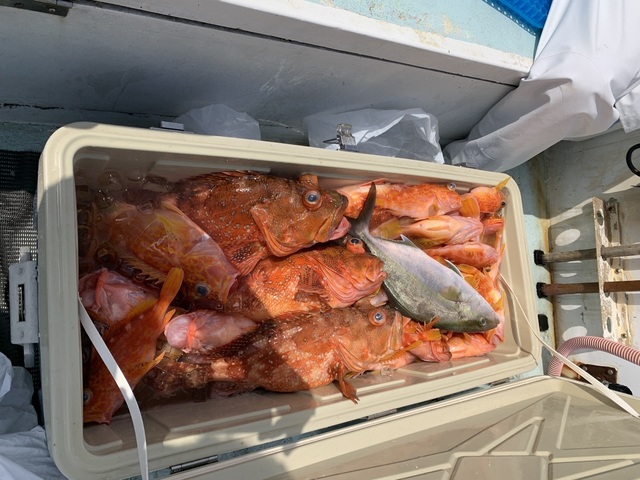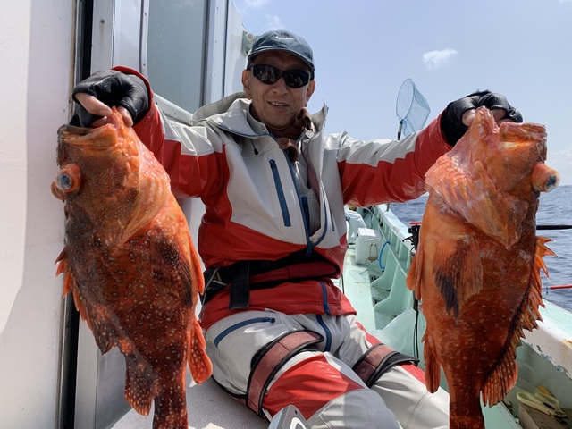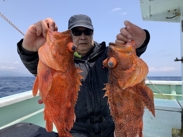 25~44cm 36~60匹 今日は希望により神子元沖のカサゴ五目に出船しました。朝から喰い良くアヤメカサゴ中心にカンコやオニカサゴを少ない方でも36匹と大漁でした。また希望があれば出船したいと思います。