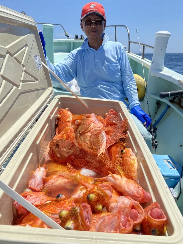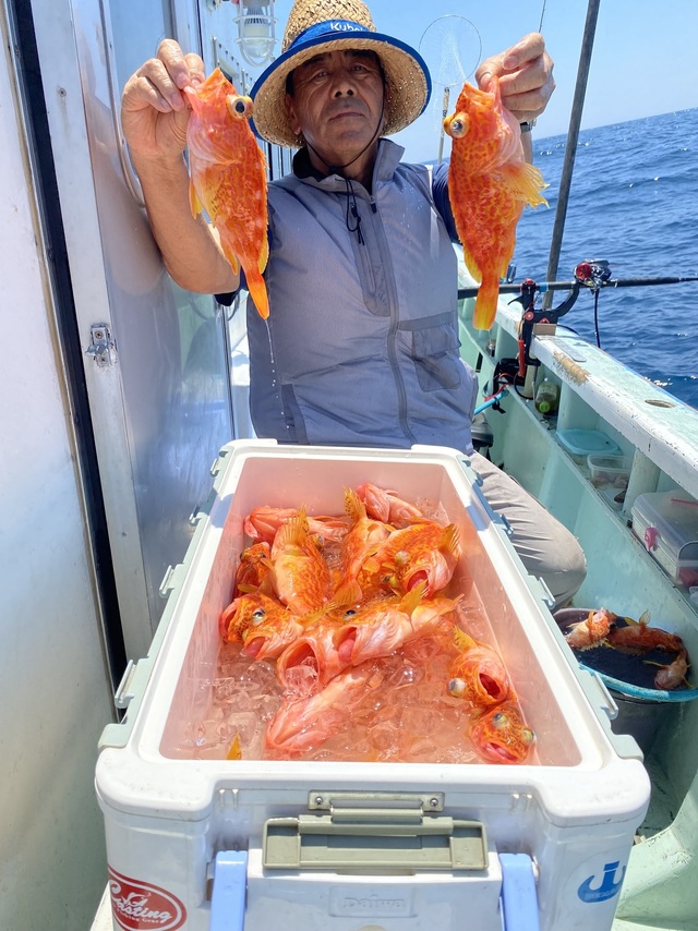 24~25cm 30~77匹 今日は神子元沖のカサゴ釣りに出船しました。潮が悪く釣り難い状況でしたが皆さん最後まで頑張ってくれました。アヤメ、カンコ、オニカサゴまじりで良い人は77匹まで釣れました。また希望があれば出船しますので予定表の空欄かカサゴ釣りの日にご予約下さい。
