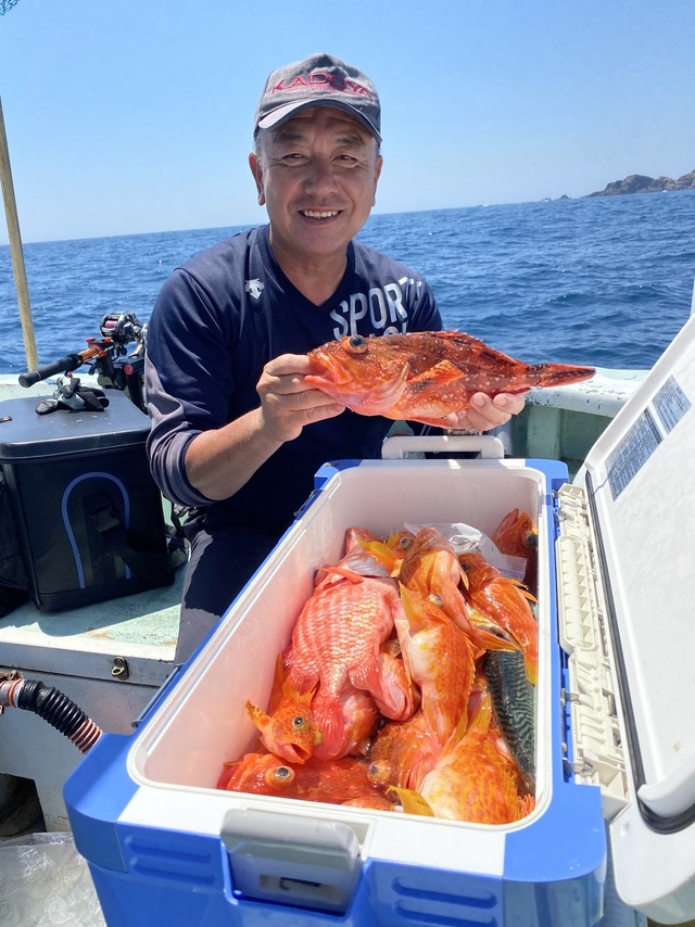 午後泳がせ釣り。喰い渋く、アカハタ・カサゴが型程度。 水温上がりイワシの持ちが悪くなってきました。 今後はサビキでアジ・イワシ等小魚釣ってから狙いますので、サビキ(ハリス1.5~2号)・オモリ60号・コマセ袋等もご用意ください。