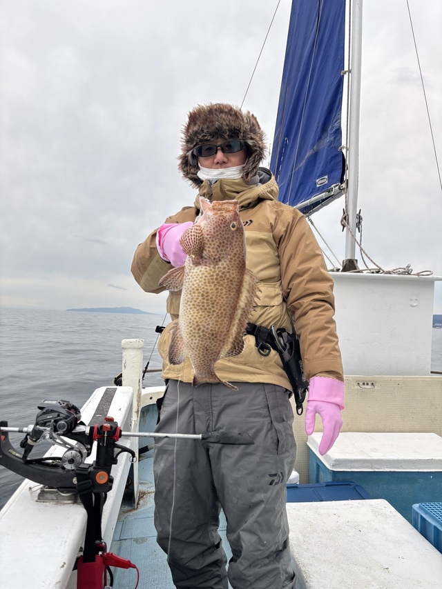午後:ヒラメ五目船。前半は深場で鬼カサゴにカンコとホウキハタ、マハタにオマケでアオリイカ(1.5㌔)。後半は浅場でオオモンハタなど。本命は1枚(2.0㌔)でした。 ご乗船ありがとうございましたm(__)m