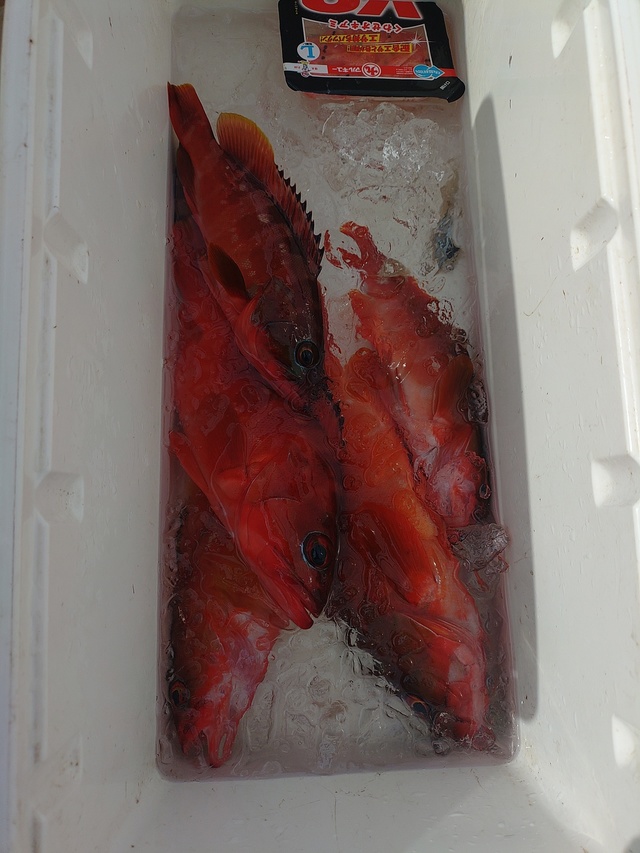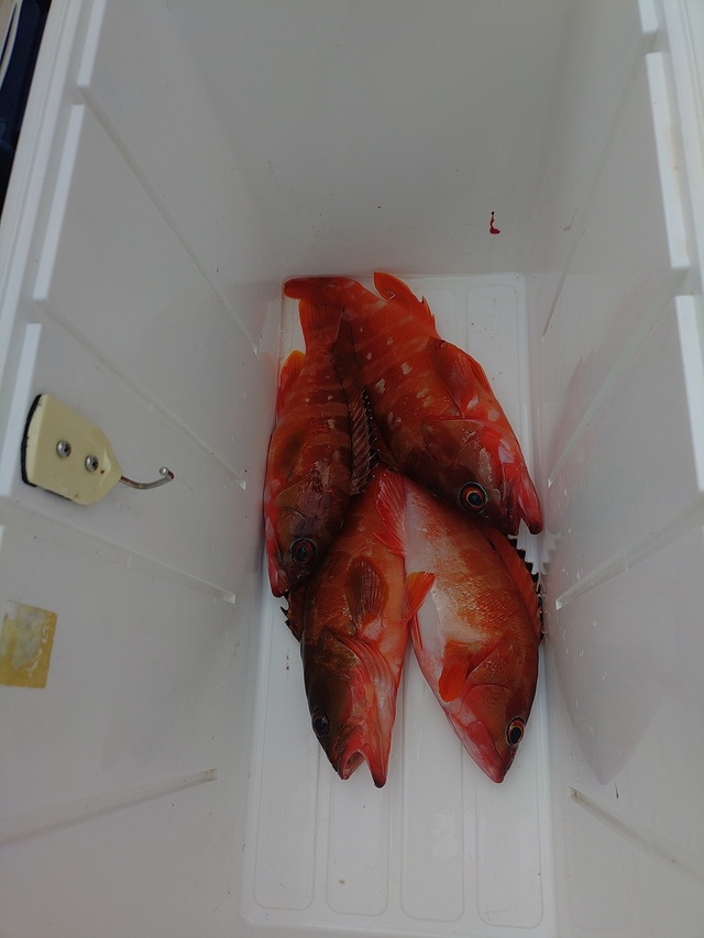 アカヤガラ マトウダイ オニカサゴ アヤメカサゴ オオモンハタ 本日、ジギング~ロックフィッシュに出船。ジギングは潮速く苦戦しましたが、アカヤガラ、マトウダイ、オニカサゴ、アヤメカサゴ、などがヒット。後半ロックフィッシュはアカハタ主体にオオモンハタもヒットしました。