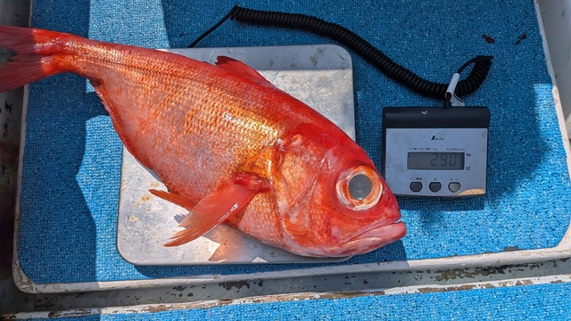(キンメダイ)0.40~1.30kg 10~15匹 深場で顔は見れてますがバラムツ被害多いです。