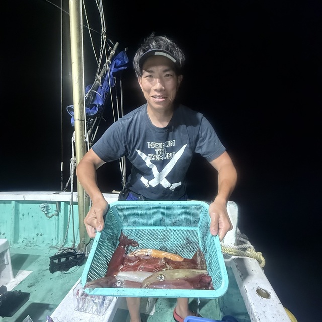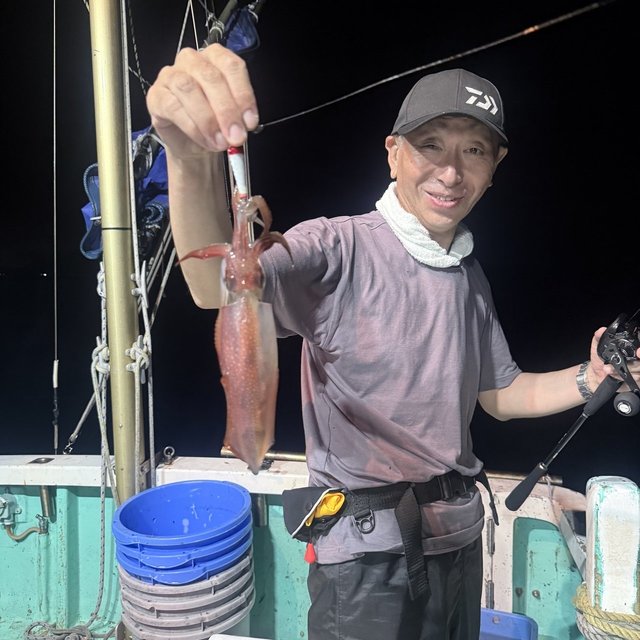 (ケンサキイカ)18~25cm 7~14匹 夜便マルイカチャレンジ! 潮が動かず低活性、型は良かったものの数伸びず。 今後に期待です。 (金)(土)(日)出船確定です お問い合わせください。
