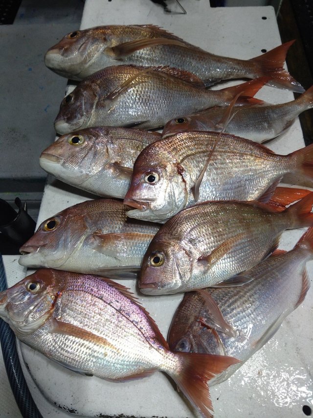25~45cm 0~72匹 夜便コマセアジでした 大アジ狙いからスタートすると本命も釣れますが鯛類が元気過ぎてマダイ、ハナダイ入れ食いでした 大アジもポツポツ混ざりますが潮も早く大変なので数釣りポイントへ。 移動後はアタリ多く、型も良型メインに最後まで良く釣れてくれました 終わってみればマアジトップ72本 マダイ・ハナダイトップ9枚 アタリ多く楽しめました 涼しい夜便コマセアジオススメです