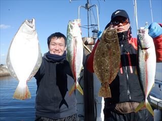 ワラサ 今日もヒラメ絶好調でした! サイズもよくてどれもいい感じに肉厚で美味しそうなヒラメでしたよ。 さらに、 今日は青物もちらほらと交ざって釣れていました! また天気予報が週末に寒波だなんだと言っていますので、この好調がいつまで続くかんかりませんよ! 肉厚の大型ヒラメを釣るなら今がチャンスですよ! 明日からはがらがらですので皆さまのチャレンジをお待ちしてます。