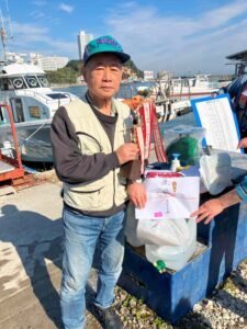 本日は「ファミリーフィッシング松新主催・JAF後援船釣り大会」サビキ五目を開催しました アジ、イワシなどの総量で競い、楽しみました。 優勝者はこの方です。 2,250gを釣り上げました おめでとうございます!2位はこちらの方です 1位と同率でした。じゃんけんで2位になりました おめでとうございます!3位はこちらの女性です 2,000gを釣り上げました。お天気も良く秋晴れ小春日和で釣日和でした。皆さん楽しく船釣りを楽しんでいただきました 。船釣りを初めての方も多く手ぶらで参加できるまつしん丸の「ファミリー体験フィッシング」の釣り大会です。 こちらはお楽しみ抽選会です。
