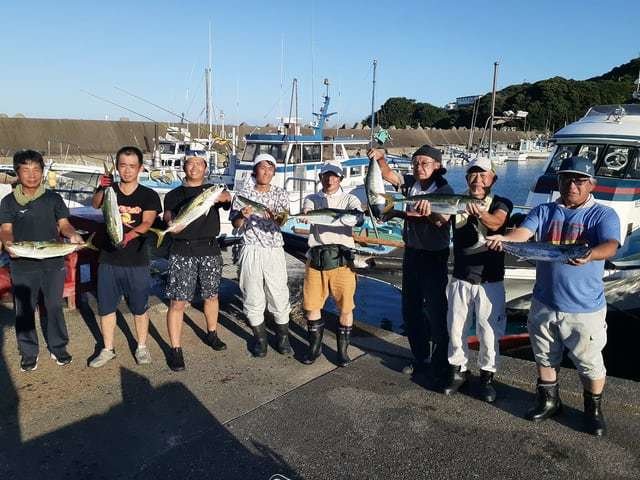 (マダイ)イサキ 30~40cm 合計50匹 チダイ ソマカツオ サバ 1号船午後便イサキ釣りです。 12時25分〜18時までイサキ釣りです。1号船です。 ポイント石鏡沖 仕掛天秤フカセの3本針、ハリス2、5号オモリ80号エサアミエビ 静岡の堀氏ら4名の釣果です。 イサキ30〜40cm50匹くらい その他チダイ、小ダイ、ソマカツオ、小サバ 南の風が涼しく吹いていて日陰の方は快適、日があたる方はかなりの暑さでした。 沖からの大きなうねりがあり波もありました。 釣座によって釣果に差が出ていました。 食いの良くなっている時には手返し良く釣らなければ釣果が伸びないですよ。 まだまだ、イサキのサイズは大きなのが多いですね。