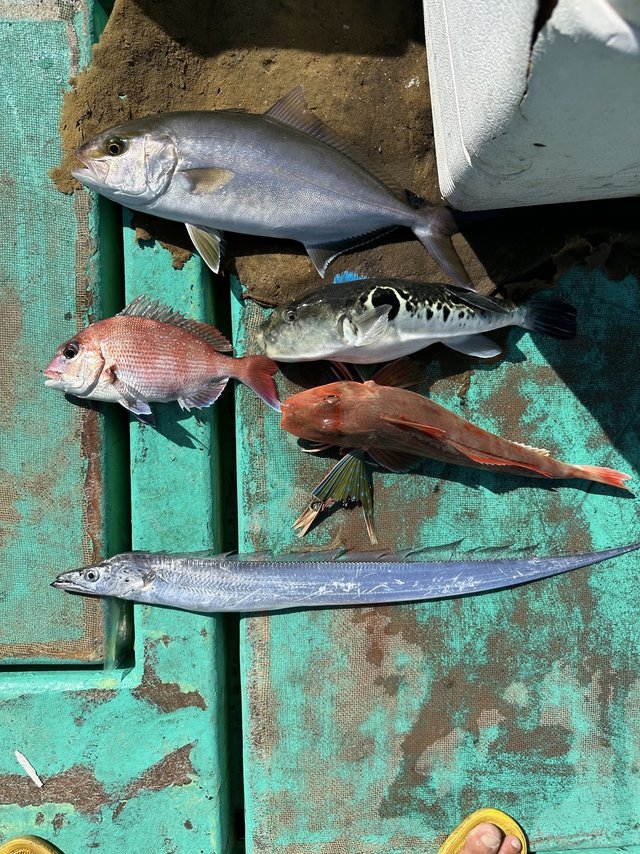 (マダイ)30~58cm 合計7匹 トラフグ 2.00~3.00kg 合計4匹 アオハタ 1.00~1.50kg 合計3匹 7月27日SLJ午前便 タイは、58cm頭に、 アジ、サバ、マルソーダカツオ、トラフグ、ハタ、色々きました。 #橋本釣具の(三重県鳥羽市) #フィッシング遊 #クレイジーオーシャン #剣屋 帰り道の車の燃料補給は、 #城山石油(堅神店) #カチッタイラバ #海毛虫 #参力プロスペック極 #プロスペック烈 #石鏡漁港 #遊漁船 #はっしぃ丸 #問合せ090-5853-0581