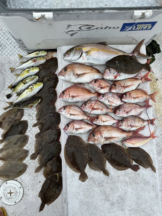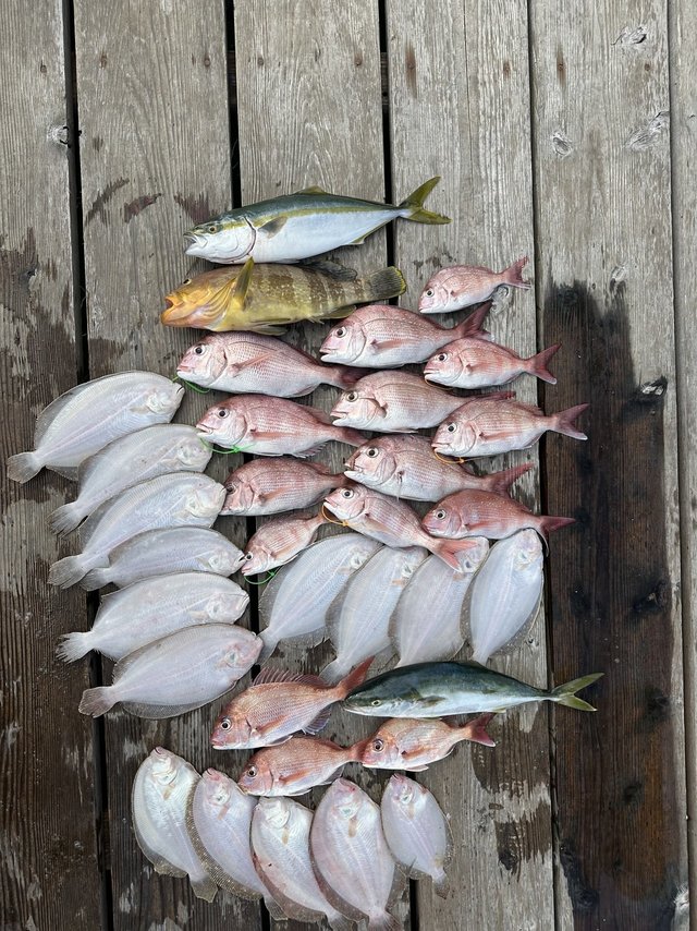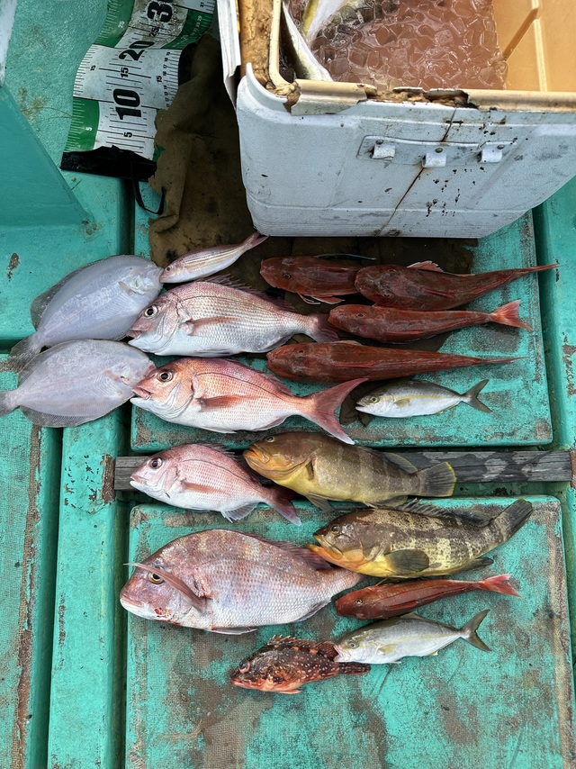 22~52cm 1~2匹 ジギング、タイラバ 鯛、オオモンハタ、アヤメ他頑張って釣ってくれました。 有り難うございました。