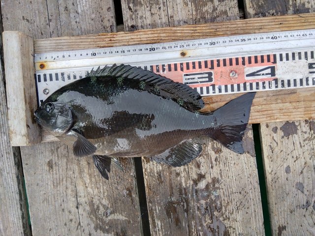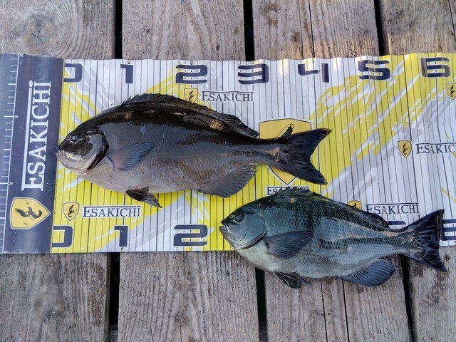 (メジナ)35cm 合計1匹 オナガグレ 38cm 合計1匹 激渋の中の釣果です。