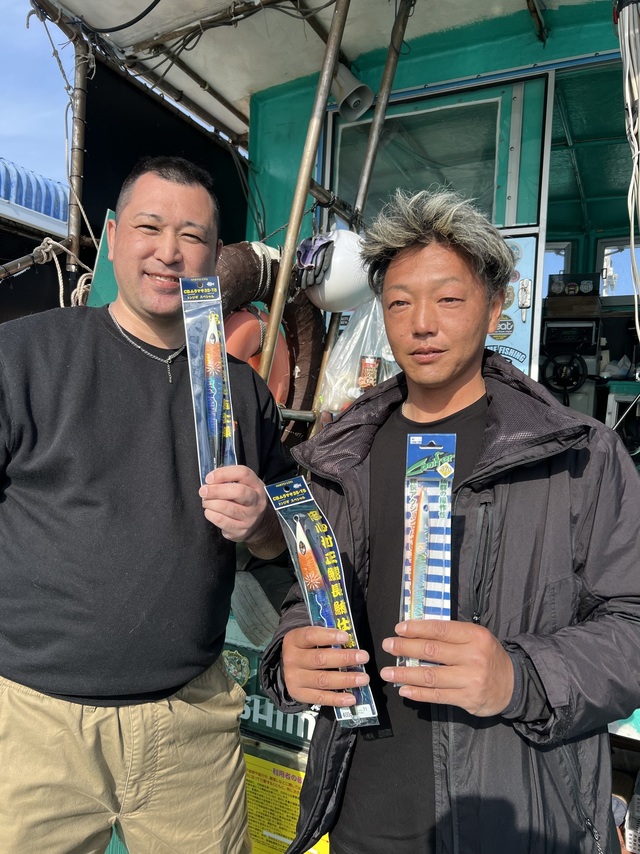 (ビンナガ)7.00~11.00kg 竿頭9匹 風は少々強目です。 今日は初心者の方ばかりの トンジギにて出船。 船酔いしないといいのですが。 釣果どうでしょう? 初トンジギにて 初トンボおめでとう。 これの前に1本バレちゃいましたから 良かったです!初トンジギにて 4本ゲットおめでとう。 こちらの方も初トンジギ 初トンボおめでとう御座います。 初トンジギにて 3本釣って頂きました。 ジークラックのジグ良く当たりました。 最後にきたーー!!! これの前に1本バレちゃいましたけど。 初トンジギにて 初トンボおめでとう御座います。 全員初トンジギの方ばかりでしたが 何とか全員安打おめでとう御座います。 朝の内爆風の中頑張ってシャクリ倒して 貰いましたけどなかなかヒットに 持ち込めず掛かってはポロリ。 ばかりでしたが。 後半から連鎖もありいい感じに 釣って頂きました👍 爆風の中お疲れ様でした 本日の御乗船ありがとうございました😊 またのご利用お待ちしております🌟