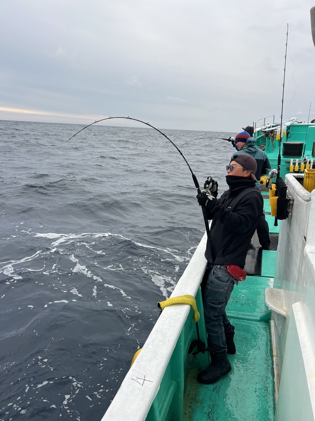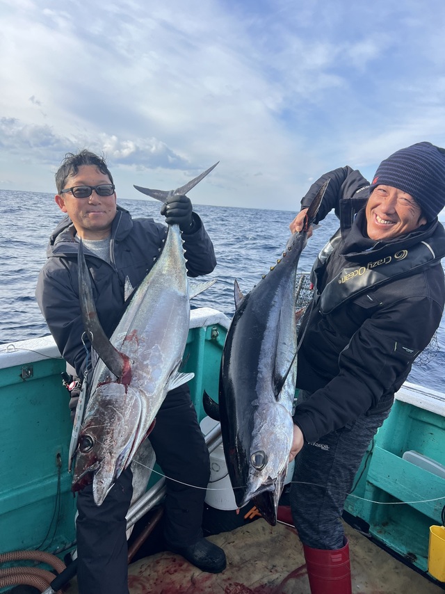 (ビンナガ)8.00~19.00kg 0~2匹 あずあずblueblueトンジギロケツアー 朝から釣れそうな潮あり…当たる切れる…大変でしたが、 なんとか抜き17.5頭に7匹バラし6 冬のトンジギに似合わない楽しいトンジギ 僚船もよく当たり、久しぶりの無線がお祭り状態 まだまだ続いてほしいですね 本日は乗船ありがとございました