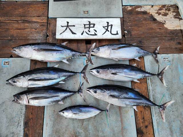 1.50~4.00kg 0~1匹 ビンチョウマグロ 5.00~11.00kg 0~2匹 トンジギ便 撮影2day…なんとか釣れてよかったです。 11k頭に9本4k頭にカツオ2 朝一にデカいいい当たりありましたが、残り30メートルでPEが切れちゃいました? 周りの僚船も賑やかな志摩沖トンジギでした 本日は乗船ありがとうございました 明日からシケ休み