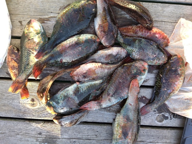 30~50cm 15~19匹 今年初のブダイ釣り。 家城さん19匹、稲葉さん15匹 大漁でした。