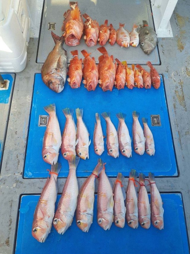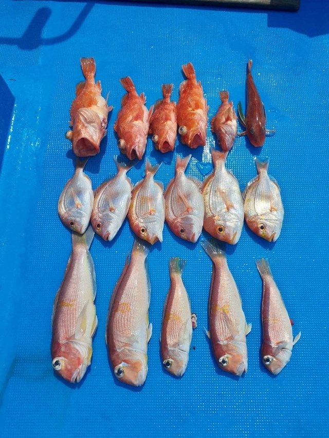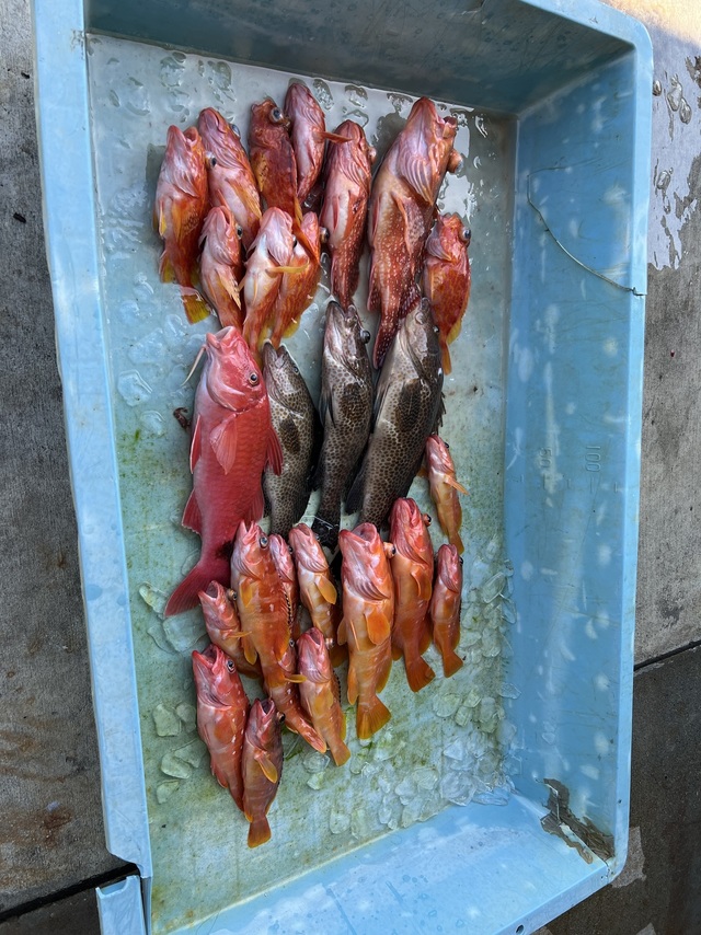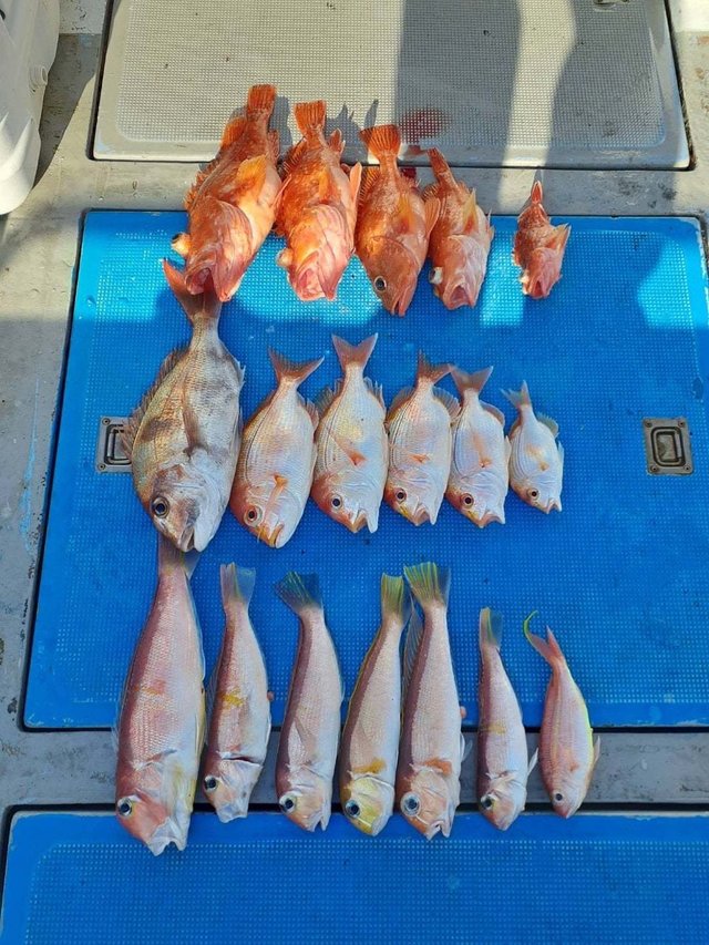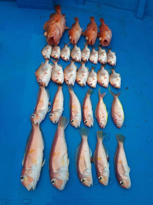 17~50cm 10~19匹 アマダイ 33~47cm 4~7匹 アマダイ、アカイサギ、レンコダイ、ウッカリカサゴ、鬼カサゴ、ヒシダイ他いろいろ頑張って釣ってくれました。常連さん二人いつも有り難うございます。