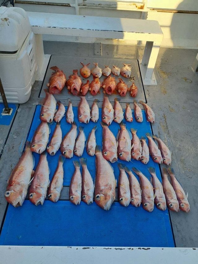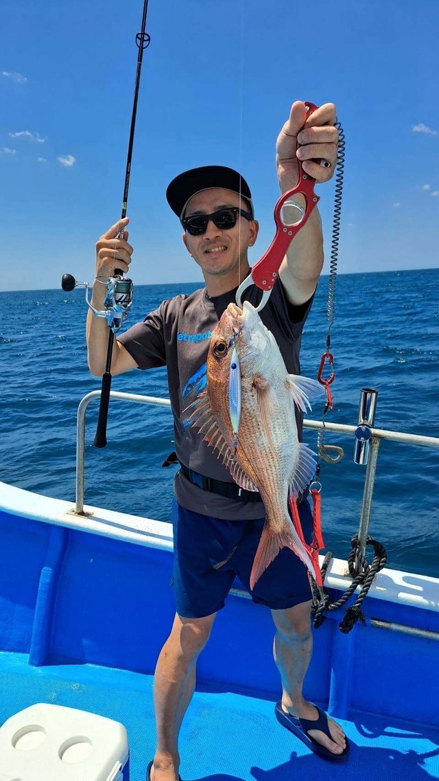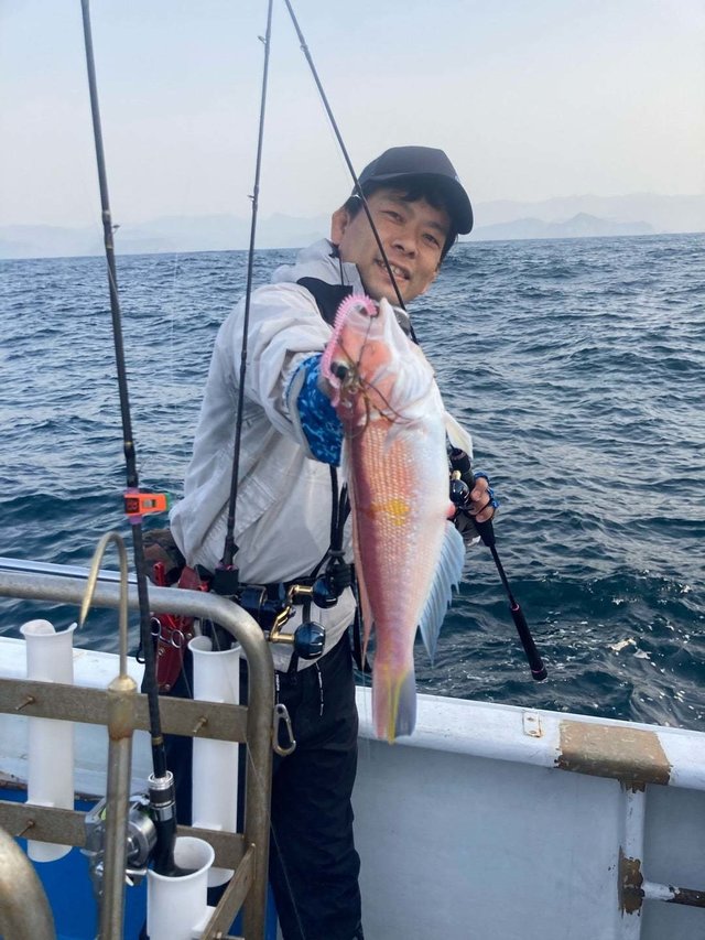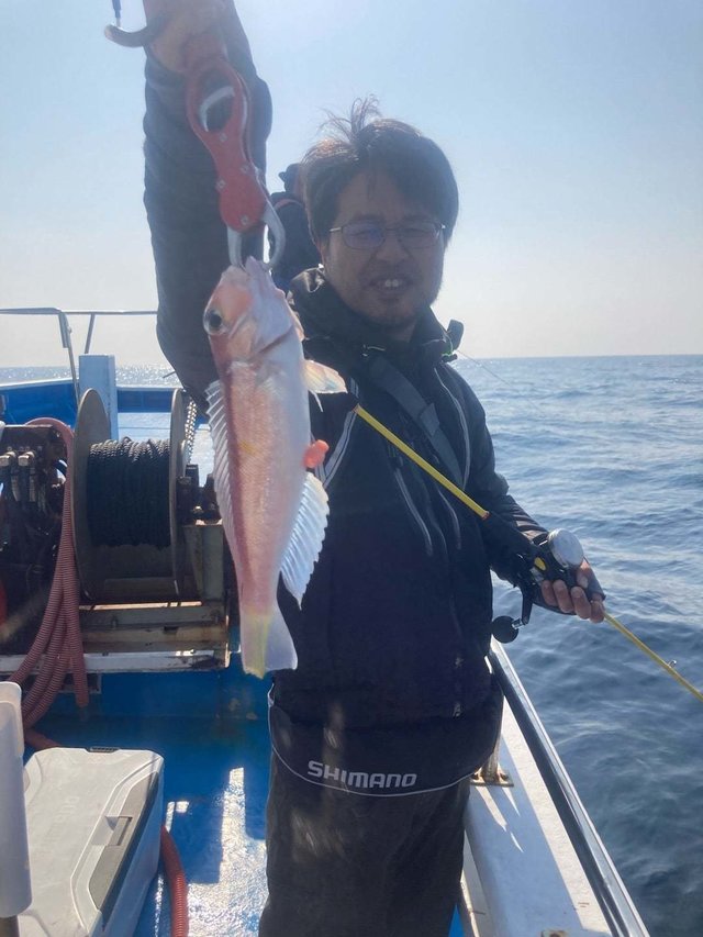 アオリ アマダイ またまた良い凪日和。 風は無くベタ凪。 今日も凪倒れたにならなければ 良いのですが? 今日もエギング→アマラバにて出船。 まずは朝一エギングから。 釣果どうでしょう? 落ち抱きでしたー。 今日はイカさん活性良いのか? サイズアップ。 キロアップおめでとう。 これも良型。 皆さんでイカさん5杯でしたー。 朝一ひとシャクリからパタパタ 釣って頂き今日は良いのか⁇ 後は続きませんでした。 諦めてアマラバへ 釣果どうでしょう? ジギングにて 目ん玉ドーン。ウッカリカサゴ。 鯛三連発。 最後に甘鯛おめでとう。 船中初甘鯛でした〜。 子供さん頑張って釣って頂きました。 さすが常連さん 激渋の中甘鯛GET。 もういっちょ甘鯛GET。 これきりでした。 整列です!! 今日はベタ凪でどうにも。 流れず大撃沈でした〜。。 ずーとバーチカルで当たりも少なく 当て逃げばかり。 常連さんも痺れてました。 ほんと酷い日でした。 最後までどうすることもできない状況で 良い所無しでした〜すいません。 クルクル巻き巻きお疲れ様でした 本日の御乗船ありがとうございました。 またのご利用お待ちしております。