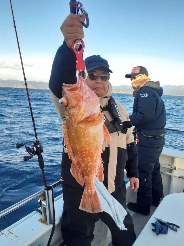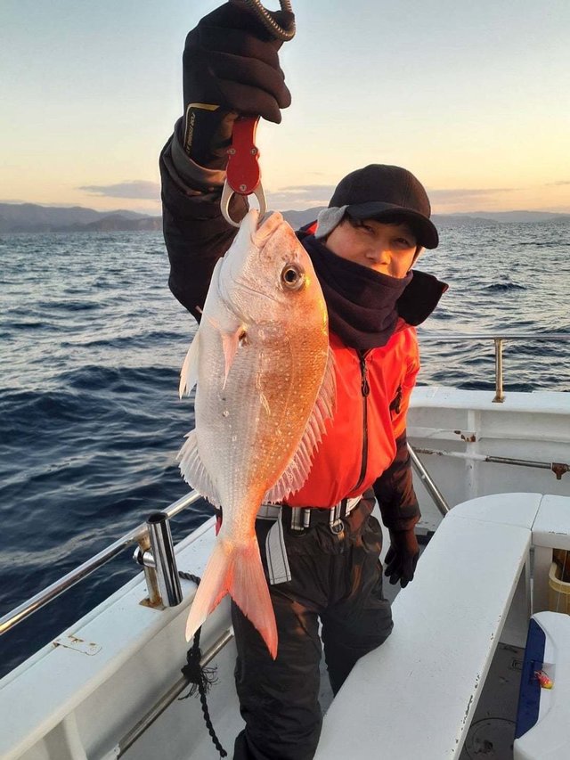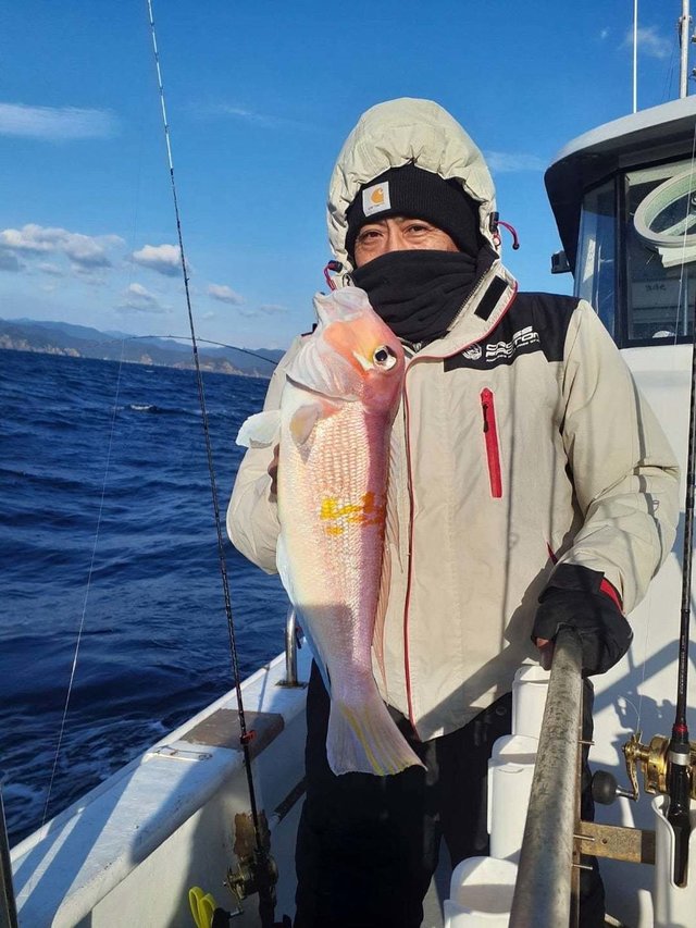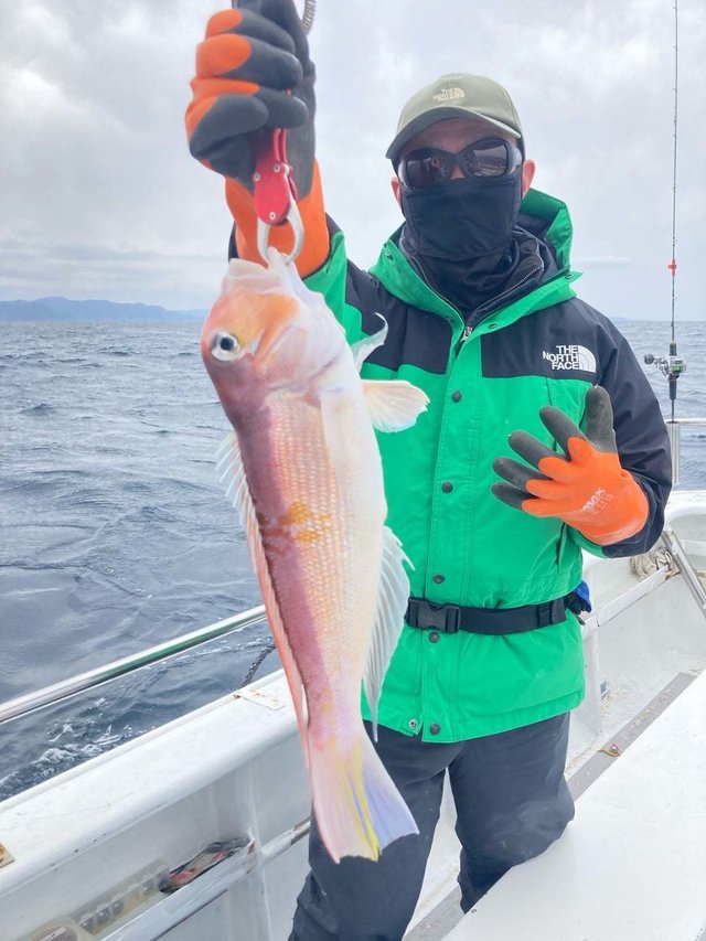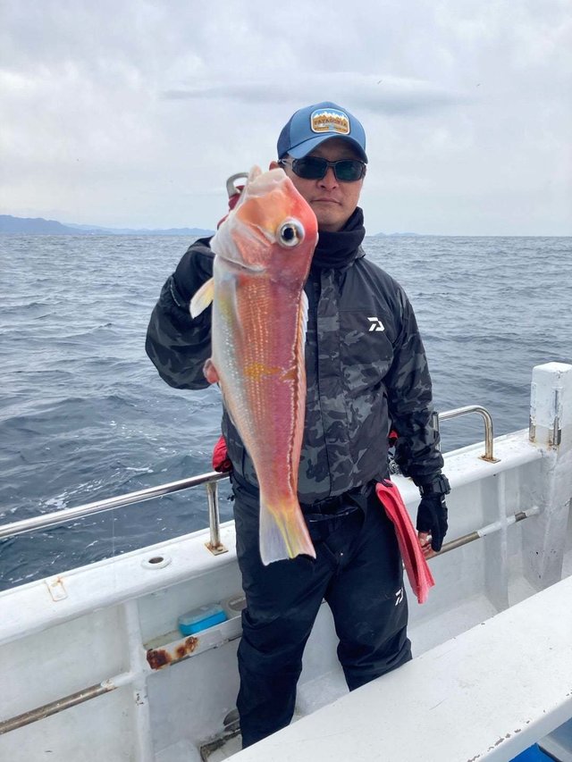 今日も良い天気です。 今日も風も無く良い凪 釣り日和ですね。 今日は一号艇・二号艇出船です。 一号艇はエギングからアマラバ。 二号艇はエギング。 まずは一号艇から〜釣果どうでしょう? 朝一ひとシャクリエギングから。 朝一ひとシャクリで常連さん。 さすがです。 後は続かず。 場所移動してまたまた常連さん。 キロアップおめでとう。 後は無でした〜。 イカさん絶不調です。 続きましてアマラバへ。 今日もお子様続いて甘鯛GET。 おめでとう御座います。 甘鯛41センチ。 おめでとう。 常連さん40アップ3連発。 さすがでございます。 渋い中でも確実にGET。 本日最大43センチ。 おめでとう御座います。 おまけでウッカリカサゴ。 真鯛もおめでとう御座います。 整列です。 今日もポロポロ釣れる感じで 潮がぶっ飛んでまして なかなかタイトなアマラバ。 当たりカラーは昨日の色は不発。 すぐさま常連さんが探して皆さん共有。 初アマラバの方も4匹釣って頂き 良かったです。 アマラバは良型もぼちぼち混じり 冬型の甘鯛チャレンジお待ちしております。 続きまして二号艇エギング。 釣果どうでしょう? 1.3キロおめでとう御座います。 後はこうちゃんとアオリ一杯だけでした〜。 良い所無しですいません。 一号艇・二号艇のお客さん最後まで 頑張って頂きありがとうございました。 本日の御乗船ありがとうございました。 またのご利用お待ちしております。