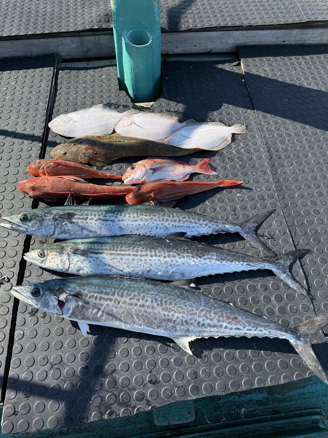 49cm 合計1匹 サワラ 80~90cm 合計3匹 タイ 48cm 合計1匹 ヒラメ 50cm 合計1匹 ガンゾウヒラメ 0.50~0.50kg 合計2匹 2月4日サワラキャスティング便 (はっしぃ&ハンター合同便) #サワラキャスティング #タイラバ #サワラ #タイ #バーディス140F #ブローウィン140J #ビンビン玉TG #カチッタイラバ #海毛虫 #極 #烈 #クレイジーオーシャン #ブルーブルー #剣屋 #ディアルナ #ルナミス #オーシャングレイブサワラ