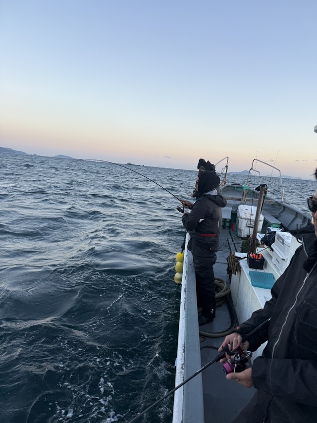 (アオリイカ)アマダイ 良い凪の釣り日和。 暖かく風も無くベタ凪。 今日も凪倒れになりそー。 今日は一号艇・二号艇で出船。 一号艇はエギング→アマラバ。 二号艇は近海ジギング。 まずは一号艇エギング→アマラバから。 釣果どうでしょう? 朝一エギングから〜。 初オフショアでイカさんGET。 おめでとう御座います。 今日もひとシャクリ お子様GET〜〜。 大人顔負けのシャクリです。 将来有望でーーーす!! イカさん2杯GET。 おめでとう。 皆さんで4杯釣って頂きました。 続いて沖出しアマラバへ。 今日は初アマラバ。 甘鯛も釣って頂きました。 おめでとう御座います。 良型甘鯛40センチ。 おめでとう。 黄甘鯛。 おめでとう御座います。 またまたお子様!! 本日最大甘鯛41センチ。 これも良型甘鯛41センチ。 おまけ〜。 どえらい奴やっつけました。 九絵10キロちょいでしたー。 おめでとう。 整列です!! 今日も昼までは昨日に引き続き。 凪倒れになって動かずはぁー。 昨日のにのまえでどうすることもできず。 昼から〜ちょい動いたタイミングで パタパタと釣って頂きなんとか釣果に どえらい奴も釣れて今日はギリギリセーフ。 イカもなんとか甘鯛もなんとか釣って貰え 初オフショアの方も両方とも釣れて良かった。 続いて二号艇は近海ジギングです!! 釣果どうでしょう? 長い奴とシオのダブルヒット。 ワラサGET おめでとう御座います。 目ん玉ドーン。 ウッカリカサゴ!! 近海ジギング整列です。 今日はジギングも午前中朝一のみで 後はいまいちで昼からの動きで ポロポロ釣れる感じ!! ジギングも凪倒れ寸前でしたが 何とか釣果にはなりました。 今日はジギングも潮が動かず 良い所無しですいません。 一号艇・二号艇のお客さん最後まで 頑張って頂きありがとうございました☆ 本日の御乗船ありがとうございました。 またのご利用お待ちしております!!