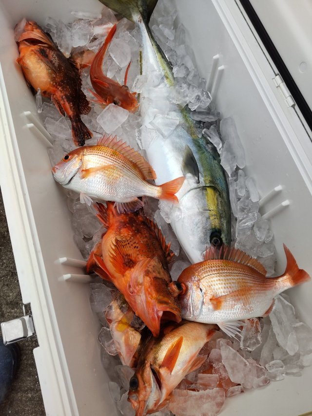 ガシラ オキメバル アマダイ 真鯛ご希望でしたが、まだ釣れないので根魚狙いで頑張って頂きました! 今日は強風予報でしたので、早出早帰りでした。ありがとうございました。