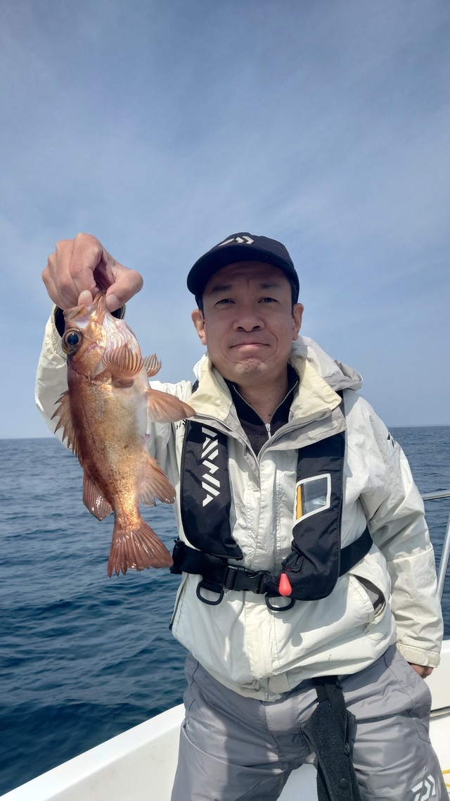(キジハタ)30~40cm 合計4匹 アコウ便 今シーズン初アコウ便で出船しました。 浅めポイントから、深場へ移動しながら、探ってもらううちに、少ない当たりをしっかり合わせた方は中型~大型4匹でした! その他良いサイズのカサゴ、メバル、マトウダイも! 水温上がってきてますので、アコウもどんどん良くなると思います。