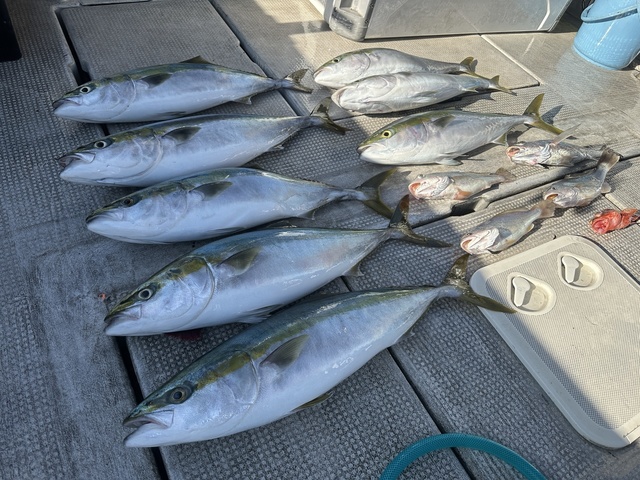 (カサゴ)20cm 合計1匹 メジロ 68~72cm 合計8匹 シログチ 30~32cm 合計3匹 クログチ 35cm 合計1匹 11月22日釣果情報 本日は青物と黒グチの二本立て!常連様、8名様とゆくチャーター便! いつもありがとうございます! 早朝はさすがに冷えて参りました! 寒いですが、今日も元気にエサ釣りから行きましょう! 問題なくすぐに釣れたので、早速青物のポイントへ向かいます! 割とすぐに釣れ始めました! 今日はキッズ達も3名ご乗船!楽しんで頂けたようです。 写真がとても良いお顔! 何匹か釣れていたのですが、潮が緩んで来たので、黒グチのポイントへ移動します! 黒グチは青物ほどコンスタントに釣れた感じではありませんでしたが、それでも 白グチ3匹!大きいサイズで約、32cm 黒グチ約35cm ガシラ約20cm 潮が動いて来たのでもう一度青物のポイントへ! 全部で メジロ8匹!大きいサイズで約72cm でした。 時間となり、本日はストップフィッシングです。 今日も頑張っていただきまして、ありがとうございました。 又のお越しを、お待ちしております。 大阪船釣りボート(ジギング、エサ釣り)仲間募集 大阪湾南部に位置する、田尻漁港発游漁船! 大阪湾の豊かな海で関西国際空港や、淡路島を眺めながら、季節によって様々なお魚を釣ることができます。 「初めての方も、経験の浅い方も、女性の方も、安心して気軽にたのしんでいただきたい」 そんな気軽に楽しめるフィッシングをご提供いたします。 詳しくはホームページで! https://www.jack-f.com 今年の6月より、物価高騰の為、料金設定を変更させていただいております。 詳しくはホームページをご覧いただきまして、ご予約をお願い致します。 ご了承下さいませ。 只今お得なポイントカードを進呈させて頂いております。是非この機会に皆さま、お誘い合わせの上、お越しくださいませ 沢山ある、釣船の中で選んで頂きありがとうございました。 又のお越しをお待ちしています。 ◆ご予約は090-7759-0555へお電話下さい。 ??釣割からの予約はこちらから!『釣り船予約サイト「釣割」【日本最大級!3,000以上の船釣りプランを最安値保証で予約】』 ??アングラーズからの予約はこちらから!『アングラーズ釣船予約https://ships.anglers.jp釣船予約』 割引多数あり! #jack#jack#ジャック乗り合い便チャーターボートフィッシンオフショアジギングタイラバテンヤノマセ 釣り船釣り女子手ぶらでOK初心者歓きれいなトイレ付き南大阪泉州大阪湾関西空港田尻町泉南市田尻漁港太刀魚青物真鯛カワハギ餌釣り