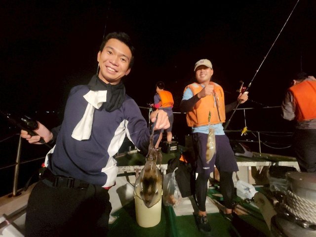 ハマチ ヒラメ アオリイカ シオ 本日、色々便で出船。 今日は色々な釣り方で色々な魚狙ってみました!朝一はノマセから!ポツポツ青物当たり、お目当てのヒラメも小ぶりでしたが釣れて良かったです!続いてタイサビキ!やり始めから良く当たりましたが、エサ回りすぎて、青物まみれ。最後にティップラン!数こそ出ませんでしたが顔見れてよかったです!本日はご乗船ありがとうございました、またお願いします!