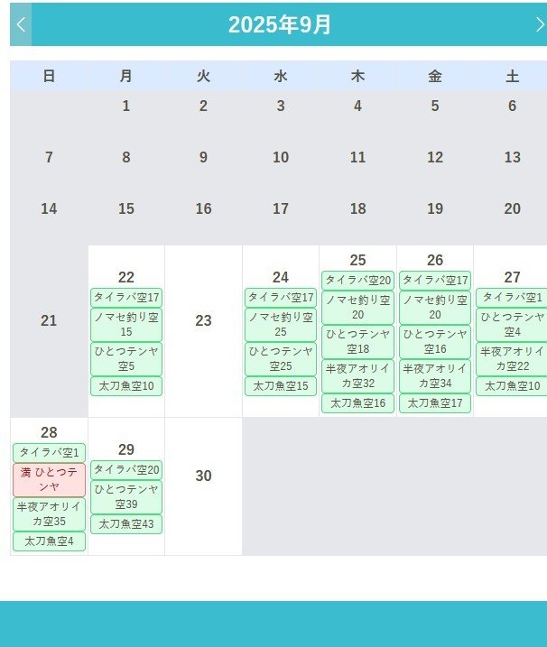 (マダイ)30~50cm 合計6匹 9月21日・昨日の一つテンヤ便の釣果。トップ真鯛6枚、アコウ4、キビレ4、ヨコスジフエダイ2、オコゼ1、ツバス1、タモリ1、エイ1、サメ3、赤ベラ1、青ベラ2、とにかく色々な魚種が釣れて面白い1日でした。その後の半夜アオリイカはトップ10に届かず苦戦。本日の一つテンヤ&タイラバも難しめでした。大潮の土日は苦戦しました。、。ここから更に良くなってくれると思うので、是非遊びに来てくださいね。10月からはカワハギ便を始めます!!!スケジュールは画像一番最後をチェックお願いします。