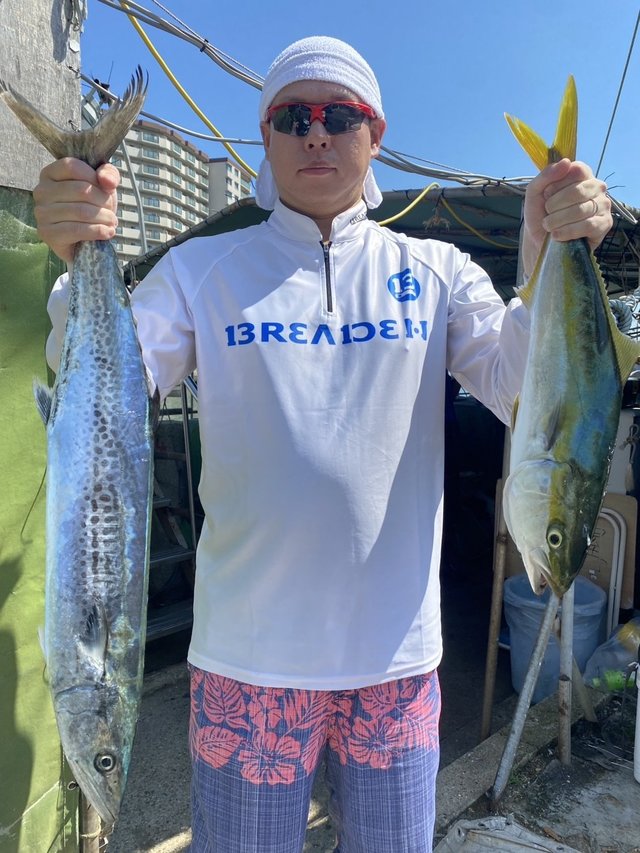 (ブリ)ハマチ(ブリ) サワラ 合計1匹 サゴシ 合計1匹 ジギング便 船中51本。(サワラ1本。サゴシ1本。ツバス〜ハマチ49本)リリース込み。 竿頭様9本でした! サワラ好調です!が、、、今日はあたりがあってもバラシやラインブレーク、サワラカッターなどで上がってきたのは1本のみ、、、難しいですね。 ツバス〜ハマチは中盤から元気いっぱい ですが、メジロは混ざらず、、、こちらも難しい。 それでも皆さん良くあてて釣って下さいました。 ありがとう御座います。 いつもお越しいただきありがとう御座います!最後までお疲れ様でしたm(__)m