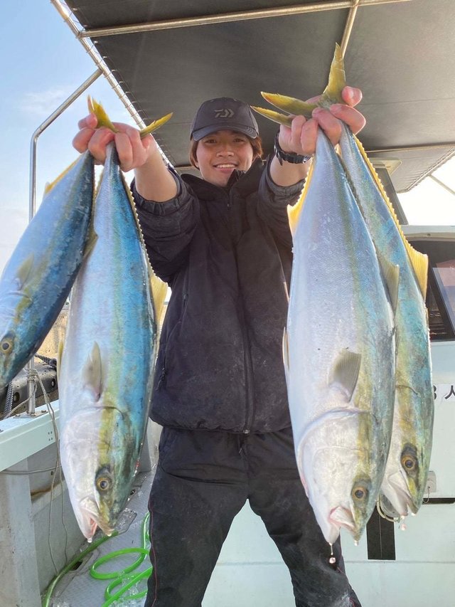 (ブリ)合計50匹 メジロ(ブリ) 合計3匹 本日は紀北遠征ジギング便で出船しました。 3月にも入り少し暖かくなってきましたね。 でも、まだ朝は寒いので。 体調管理には皆様気をつけてくださいね。 釣果ですが、今日も青物全員安打。 釣果はメジロ3本、ハマチ50本でした!