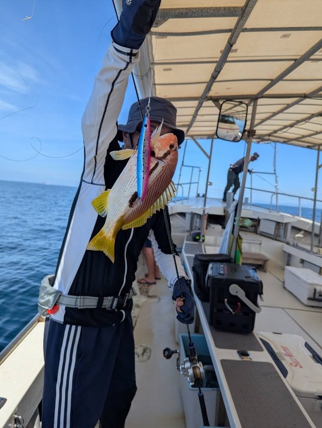 (カンパチ)合計2匹 メジロ 合計1匹 ツバス ハマチ ジギング便。 船中31本。(メジロ1本。シオ2本。ツバス〜ハマチ28本。)竿頭様9本でした!