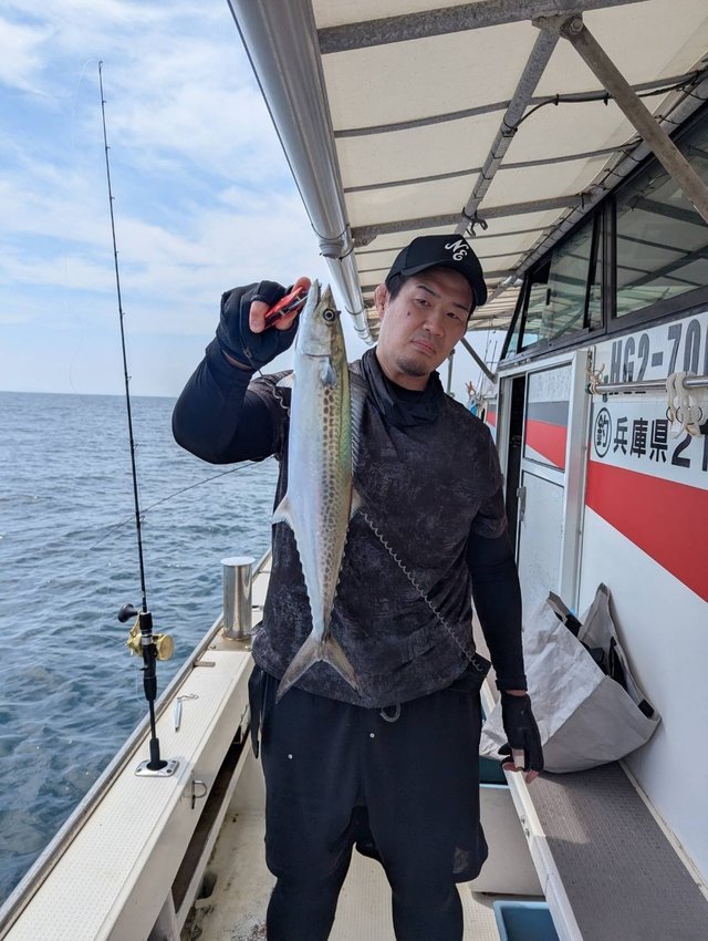 (カンパチ)合計4匹 メジロ 合計2匹 サゴシ 合計4匹 ツバス ハマチ ジギング便。 船中40本。(メジロ2本。サゴシ4本。シオ4本。ツバス〜ハマチ30本。)リリース込み。 竿頭様9本でした!