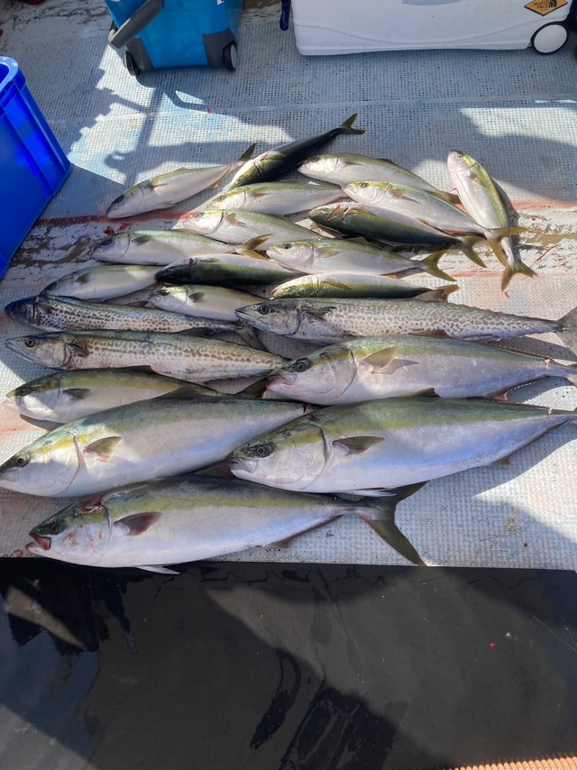 合計3匹 サゴシ(サワラ) 合計4匹 ハマチ 合計2匹 本日はミタチ丸。マイスタイルジギング大会。で出船しました。 釣果は中々テクニカルでしたが、当たると一瞬バタバタなシーンもあり、ラインブレイクや、サワラカッター等多数でしたね。優勝された方おめでとう御座います。 また来年も開催できればと思いますので是非参加してください。 皆様最後までお疲れ様でした。